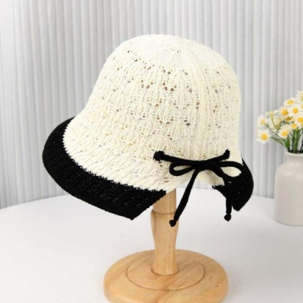 투톤 리본끈 보넷 햇 화이트