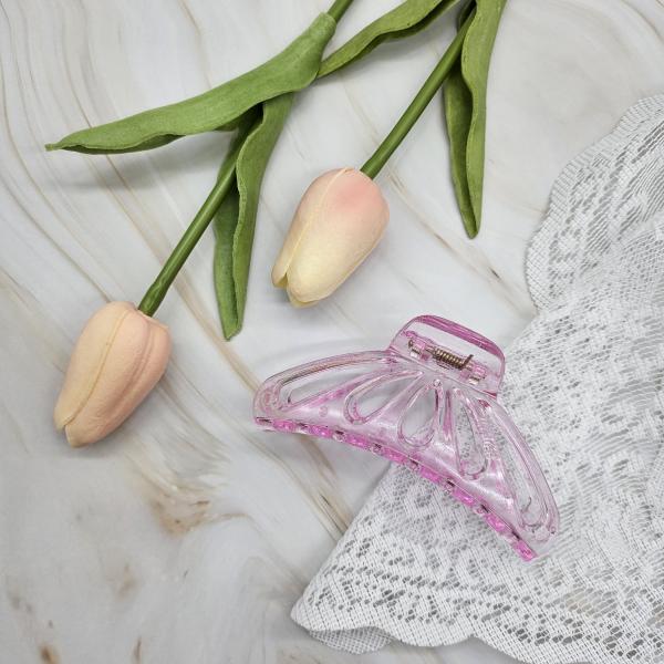 나비모양 라운드 헤어집게핀 투명퍼플