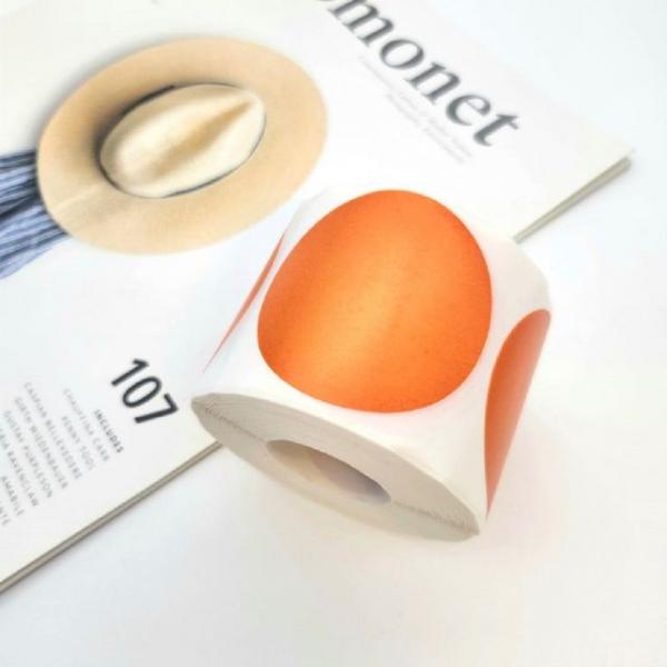 대형 컬러 원형 5cm 롤스티커 주황 500매 1롤