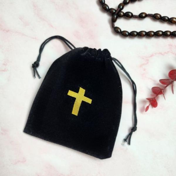 크로스 패턴 블랙 벨벳 주머니 9cmx12cm