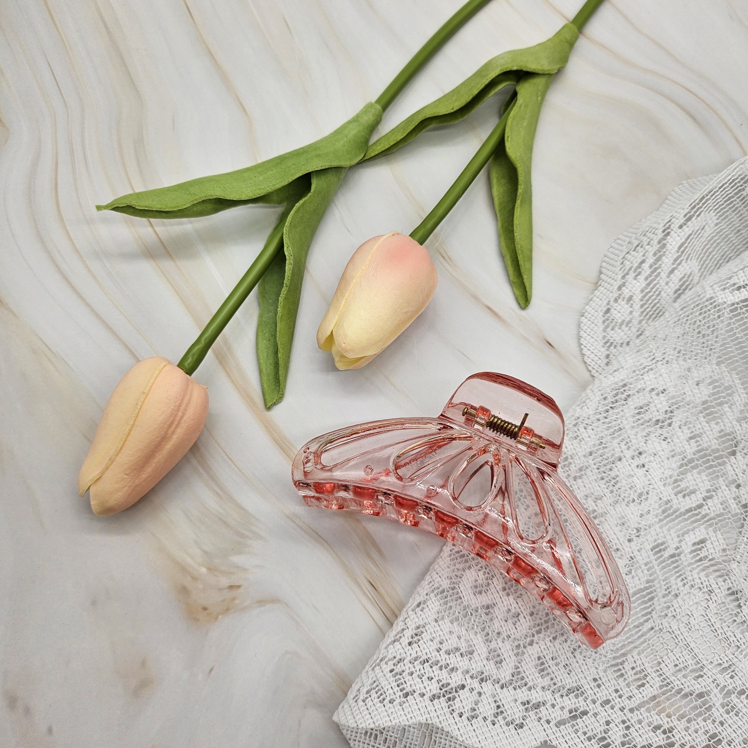 나비모양 라운드 헤어집게핀 투명화이트